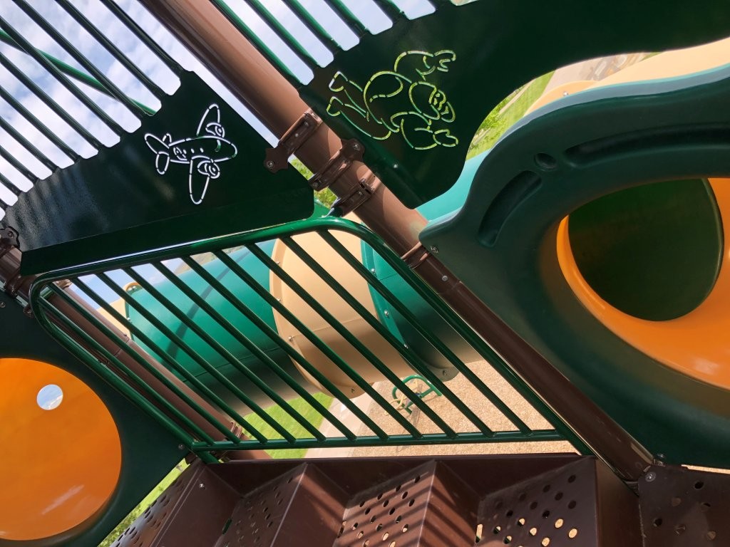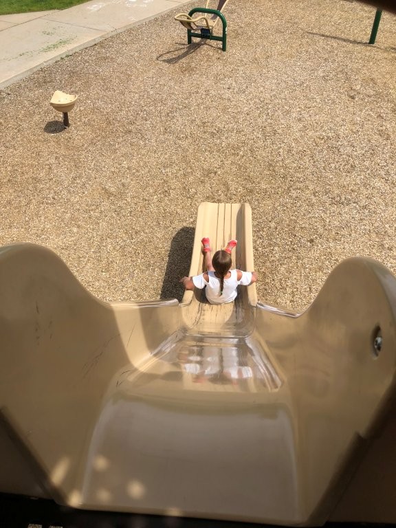 Unique Features: The girls were in absolute awe as we walked toward the play structure – it had one of the TALLEST slides we’ve seen! My oldest told me after “The slides were the scariest but most fun I’ve ever been to!” Then when I asked what my other two daughters thought of the park, I got “Amazing!” and “That was crazy!”. It was fun for me too as I heard them laugh and scream their way down đ Not only were there two tall curved slides, there was also a very steep open slide that took their breath away!